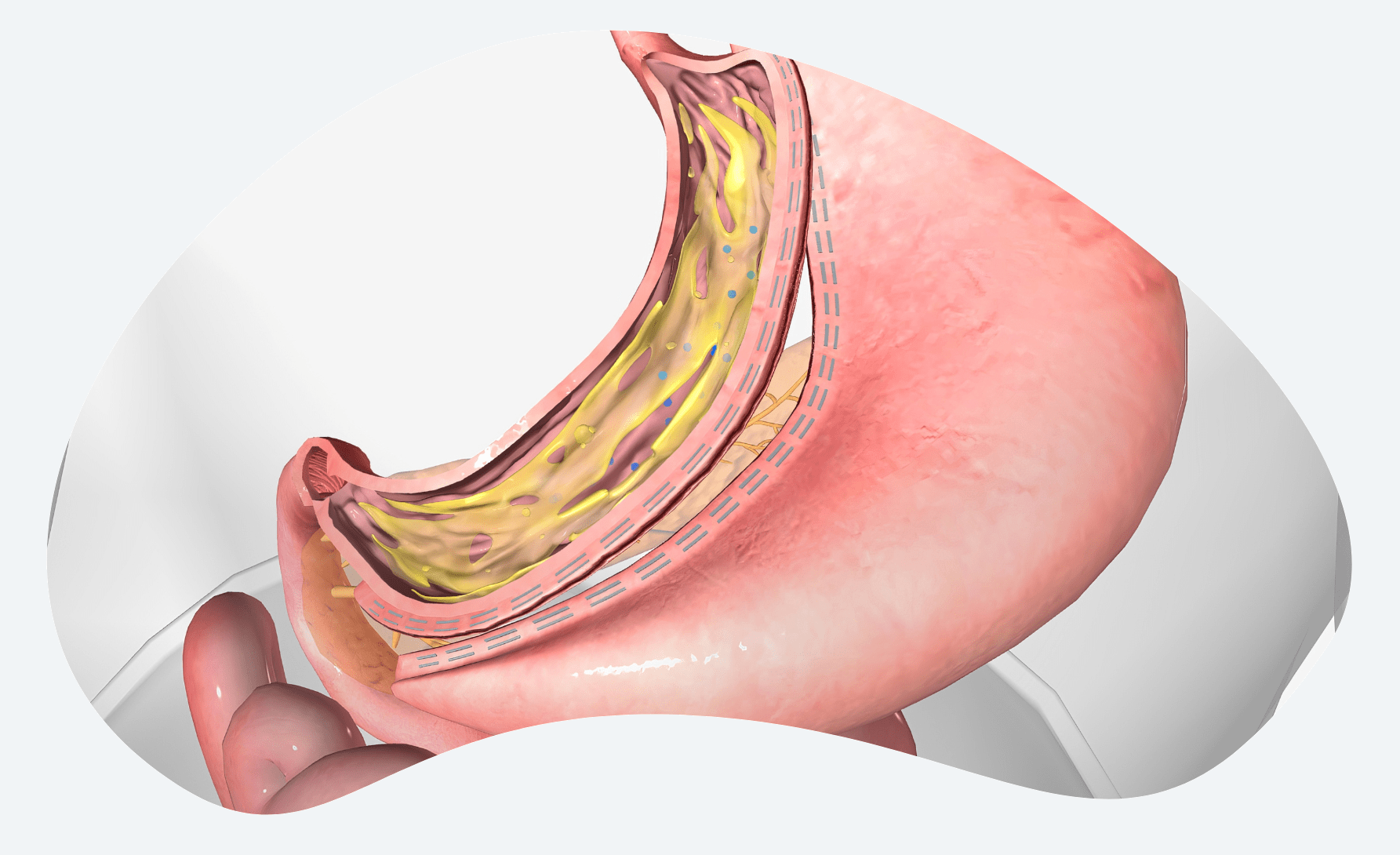 Esto reduce significativamente la capacidad del estómago, ayudando a limitar la ingesta de alimentos y a promover la pérdida de peso.